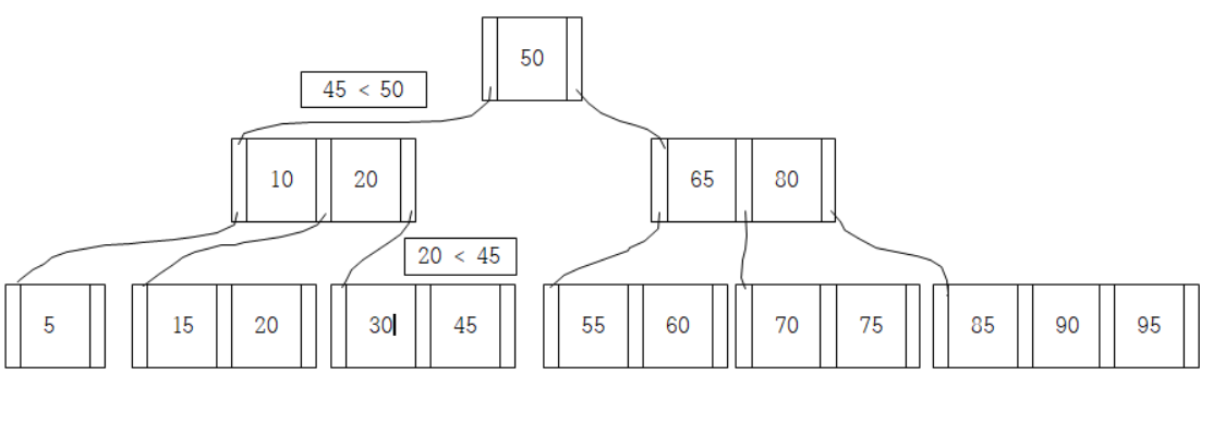 ex) key값 45를 탐색한다고 하자.